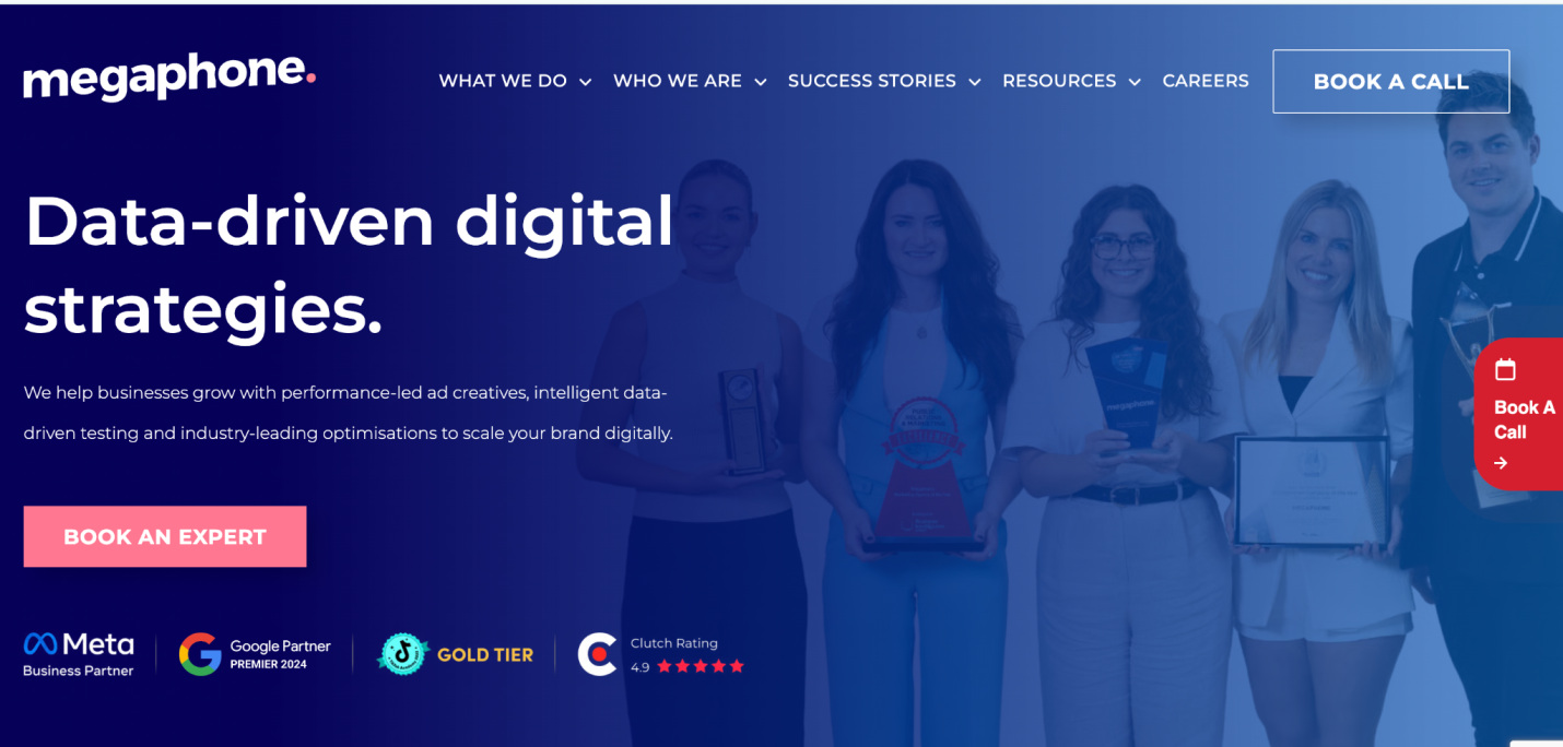 Megaphone is positioned around strategic planning and integrated performance marketing. Key strengths include: