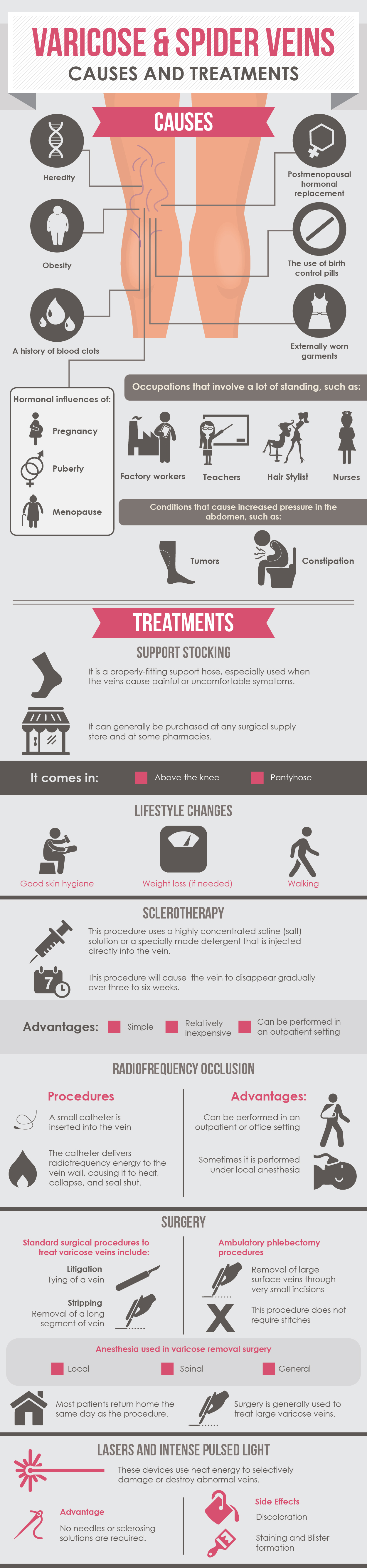 Spider and varicose veins are superficial veins that have been damaged so that they no longer can pass blood effectively. Check out here the causes and treatment for spider and varicose veins. For more details read it here.